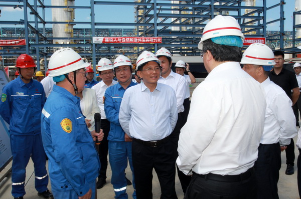 29日上午,孫金龍一行前往山東裕龍石化產(chǎn)業(yè)園,調(diào)研裕龍島煉化一體化項(xiàng)目。該項(xiàng)目位于煙臺市所轄龍口市,是山東省新舊動能轉(zhuǎn)換、現(xiàn)有地?zé)挳a(chǎn)能供給側(cè)改革升級的重點(diǎn)項(xiàng)目,規(guī)劃產(chǎn)能4000萬噸/年。孫金龍觀看了項(xiàng)目建設(shè)紀(jì)實(shí)片并參觀了裕龍石化展廳,聽取了項(xiàng)目有關(guān)介紹,隨后前往3號島和2號島實(shí)地查看一期建設(shè)情況,現(xiàn)場考察項(xiàng)目實(shí)施、設(shè)備工藝、環(huán)境安全等情況,仔細(xì)詢問污染物排放情況和廢水、廢氣及危險廢物處置措施。他強(qiáng)調(diào),推動發(fā)展方式綠色低碳轉(zhuǎn)型,產(chǎn)業(yè)綠色轉(zhuǎn)型升級是重點(diǎn)和關(guān)鍵。要健全生態(tài)環(huán)境法規(guī)政策標(biāo)準(zhǔn),強(qiáng)化生態(tài)環(huán)境準(zhǔn)入管理,加快促進(jìn)產(chǎn)業(yè)結(jié)構(gòu)調(diào)整優(yōu)化,通過高水平保護(hù)不斷塑造發(fā)展的新動能、新優(yōu)勢。要指導(dǎo)支持企業(yè)開展綠色低碳技術(shù)改造,嚴(yán)格落實(shí)環(huán)評審批要求和相關(guān)環(huán)保標(biāo)準(zhǔn)措施,確保環(huán)保設(shè)施建設(shè)到位、規(guī)范運(yùn)行和達(dá)標(biāo)排放,切實(shí)做好環(huán)境風(fēng)險防范處置工作。