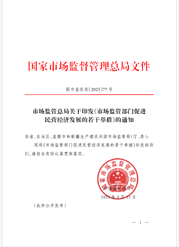 9月18日,市場(chǎng)監(jiān)管總局正式發(fā)布《市場(chǎng)監(jiān)管部門促進(jìn)民營(yíng)經(jīng)濟(jì)發(fā)展的若干舉措》。這是7月14日《中共中央 國(guó)務(wù)院關(guān)于促進(jìn)民營(yíng)經(jīng)濟(jì)發(fā)展壯大的意見(jiàn)》出臺(tái)以來(lái),市場(chǎng)監(jiān)管部門貫徹落實(shí)黨中央、國(guó)務(wù)院決策部署出臺(tái)的制度舉措,對(duì)提振民營(yíng)經(jīng)濟(jì)發(fā)展信心,依法規(guī)范和引導(dǎo)民營(yíng)資本健康發(fā)展具有重要意義。