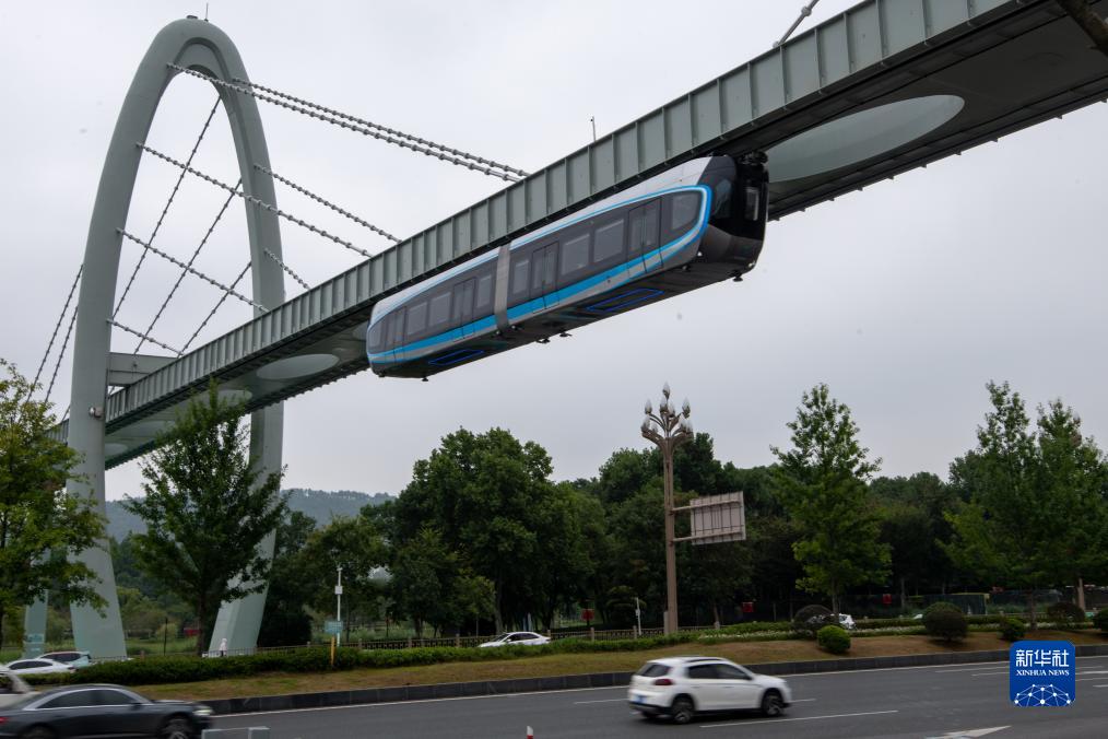 9月26日,空軌列車(chē)在運(yùn)行中。新華社發(fā)(杜子璇 攝)
