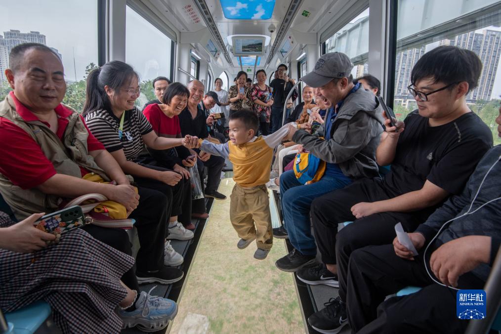 9月26日,乘客體驗(yàn)空軌列車(chē)。新華社發(fā)(杜子璇 攝)