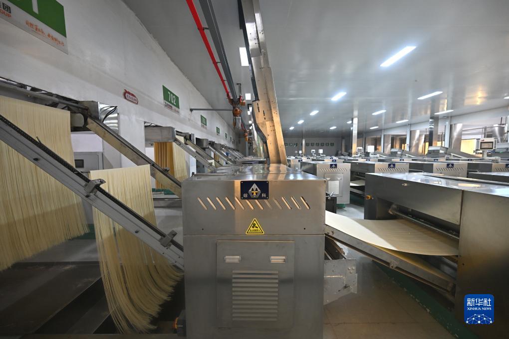 這是阿拉山口綜合保稅區(qū)內(nèi)的金沙河面業(yè)有限責任公司的面條生產(chǎn)車間(11月5日攝)。新華社記者 趙晨捷 攝