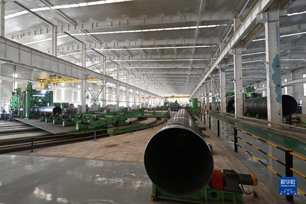 這是阿拉山口新博油氣管道制造有限責任公司的生產(chǎn)車間(11月4日攝)。該公司主營高端焊管的生產(chǎn)、保溫、防腐等業(yè)務(wù)。新華社記者 李鑫 攝