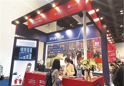 英國教育展區(qū)的相關(guān)負(fù)責(zé)人正在答疑。