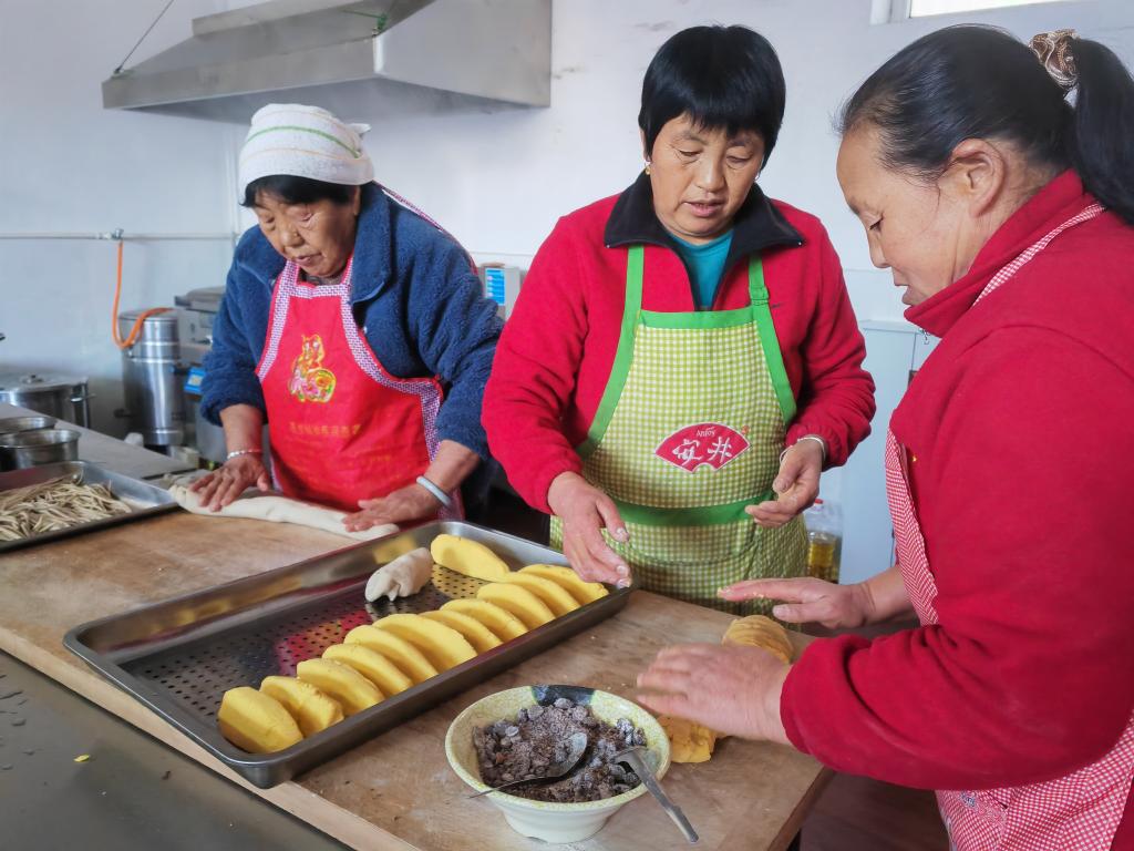 2023年11月14日,馬家峪村老年餐廳養(yǎng)老護理員在準(zhǔn)備晚餐。新華社記者魏飚 攝