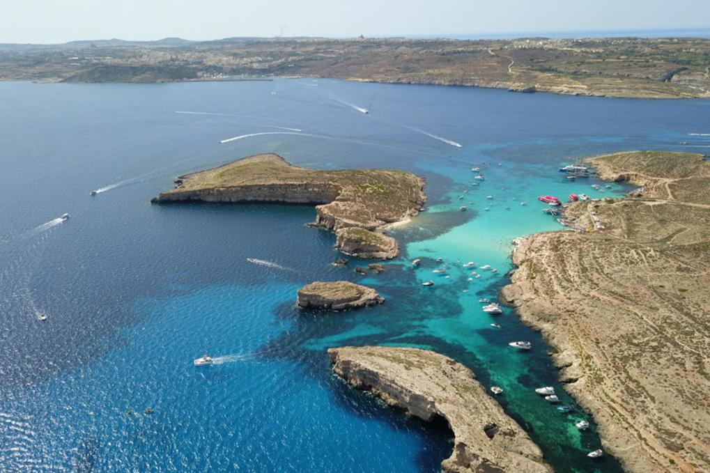 這是2023年7月7日在馬耳他科米諾島拍攝的海島風(fēng)光(無人機照片)。新華社記者陳文仙攝
