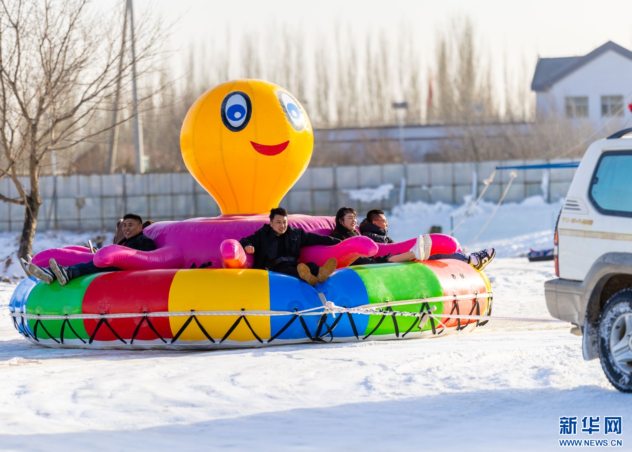12月7日,游客在呼和浩特市玉泉區(qū)大庫倫村“冰雪大世界”內(nèi)體驗(yàn)雪地八爪魚項(xiàng)目。新華網(wǎng)發(fā)(丁根厚 攝)