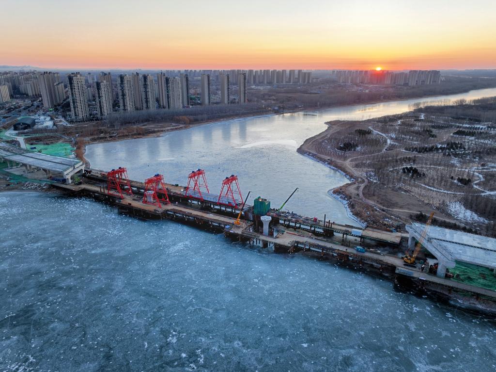 冬日,潮白河結冰的河面上,廠通路潮白河大橋項目正在爭分奪秒加緊施工。站在施工搭起的棧橋上眺望,河岸兩側的引橋已初具規(guī)模,向遠處延伸。向東,是廊坊大廠回族自治縣已經(jīng)通車的廠通路;向西,則是通向北京城市副中心的通懷路。