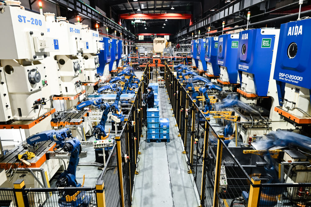 2024年2月28日,在“江蘇省專精特新中小企業(yè)”無錫微研精工科技有限公司智能生產(chǎn)車間,機械臂在作業(yè)。新華社記者 季春鵬 攝