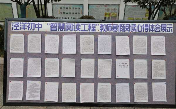 學校成立了專家組,從全校師生上交的2000余份作品中,遴選出75份優(yōu)秀學生作業(yè)成果和53篇教師優(yōu)秀閱讀成果,在校園集中布展。大家的智慧成果引來了廣大師生的駐足欣賞,成為涇中開學后一道靚麗的校園風景。
