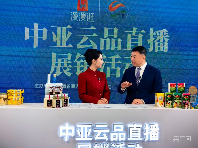 第七屆絲博會上,一場中亞云品展銷活動直播正在進(jìn)行(央廣網(wǎng)記者 陳鏘 攝)