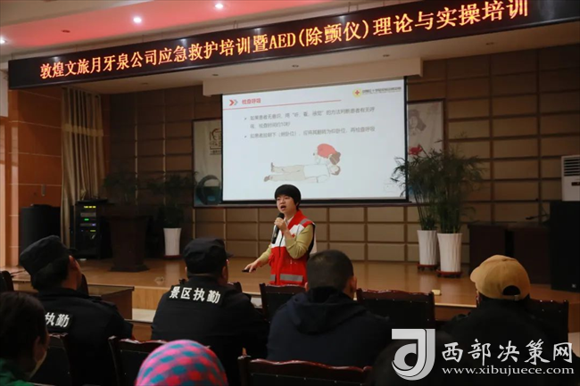 西部決策網(wǎng)訊 (記者帥華鋒 通訊員 田雅杰)保障游客的生命安全是景區(qū)一線從業(yè)者的責任與義務(wù)。3月21日下午,由敦煌市衛(wèi)健局、敦煌紅十字會、敦煌市醫(yī)院聯(lián)合開展的“博愛敦煌·“救”在身邊”應(yīng)急救援培訓,走進鳴沙山月牙泉景區(qū)。旨在提升景區(qū)全體一線人員的急救意識與變通能力,搶抓黃金4分鐘,挽救心臟驟停患者的寶貴生命。