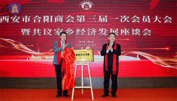 西安市合陽商會會長賈申龍先生與中國商業(yè)聯(lián)合會副秘書長朱清平先生共同為西安市合陽商會新聞采訪基地揭牌。